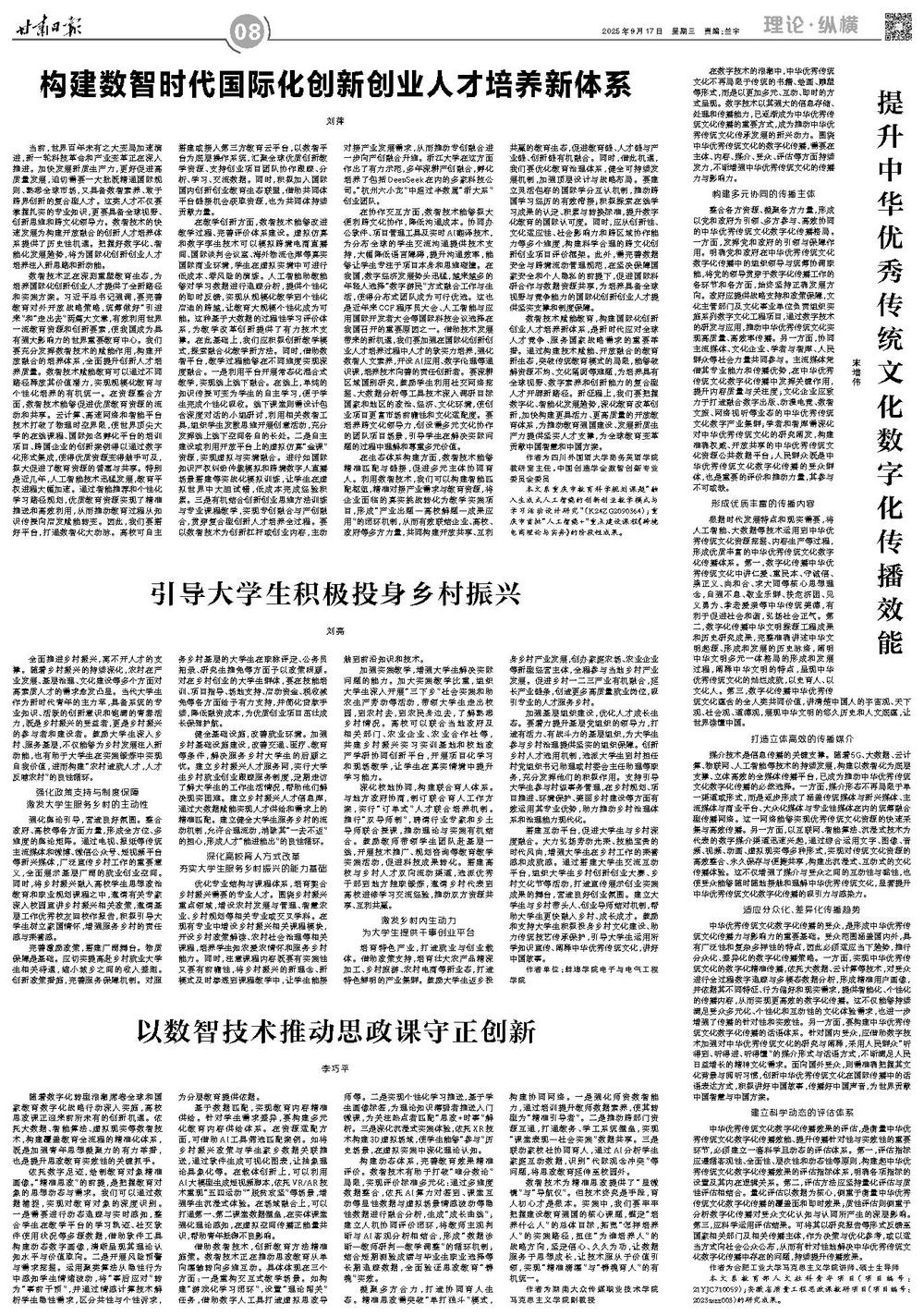 近年来,报纸理论版在高校和科研单位中的认可度不断提高。很多高校将报纸理论文章纳入科研考核体系,与学术期刊论文同等对待。这一变化使得报纸理论版从边缘地位逐渐走向主流。