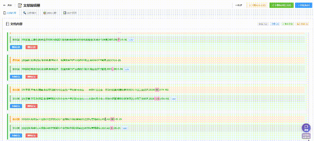 运行逻辑: 1、智能解析:自动识别参考文献和引用,目前只支持DOCX格式; 2、精准校对:将识别后的参考文献与权威学术网站进行信息源比对,从而确保文献信息来源的准确性,达到校对目的——逐字校对、修改格式; 3、一键修正:智能识别参考文献的错误,提供修正建议,可支持整篇文章的批量校对工作。